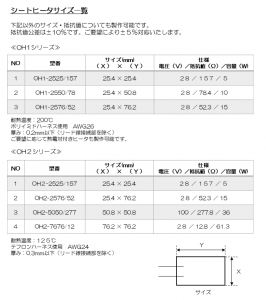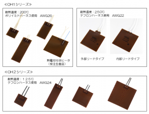 ポリイミドシートヒータ(Polyimide Flexible Sheet Heater):OH1,OH2シリーズ